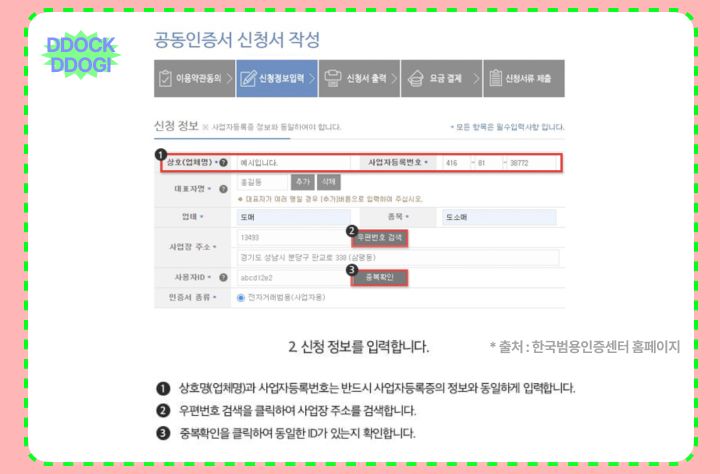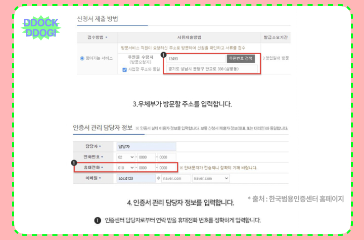 | 대표자 본인 | - 신청서 원본(자필 서명 필수) - 사업자등록증 사본 - 대표자 신분증 사본 |