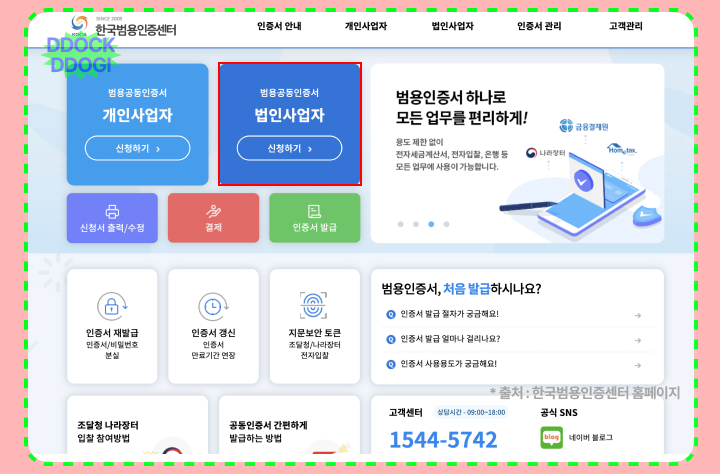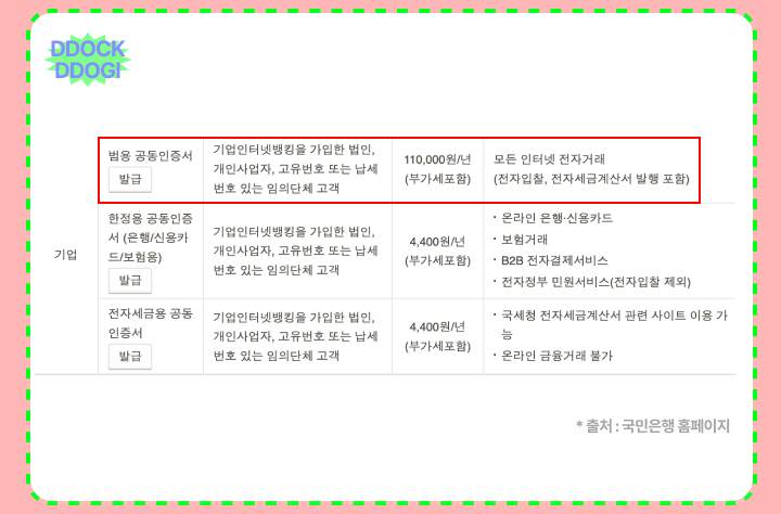 일반 인증서와 다르게 사업자 혹은 법인의 범용은