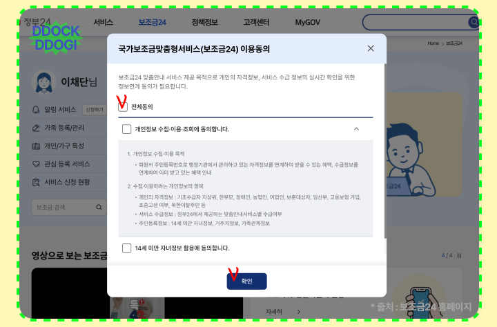 '보조금24 이용 동의' 버튼을