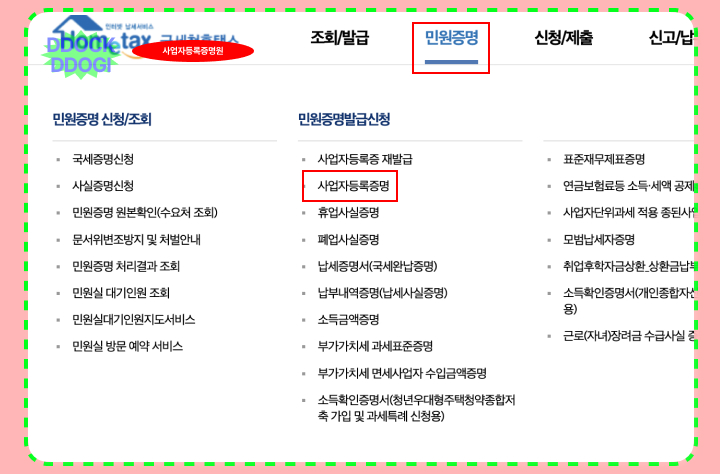 되는 것이 아닌가?라고 생각할 수 있겠지만, 사업자등록증과 사업자등록증명원은 다른 서류입니다. 이때 당황하지 마시고 집에서 아주 간단하게 발급받을 수 있으니 그대로만 따라 하시면 됩니다.