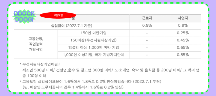 위의 이미지처럼 회사 규모에 따라서 사업자 측이 부담하는 납부금이 상이하고, 일반적인 회사 기준으로 0.9% + 0.25 % = 1.15%로 생각하면 됩니다.