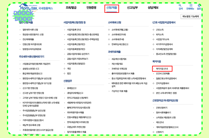 홈택스 > 로그인 > 신청/제출 > 복지이음안내