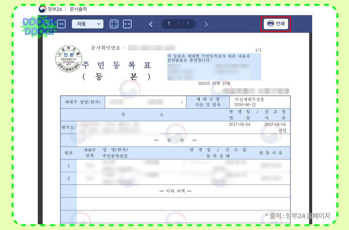 이렇게 등본 발급 이미지를 확인할 수 있고,
