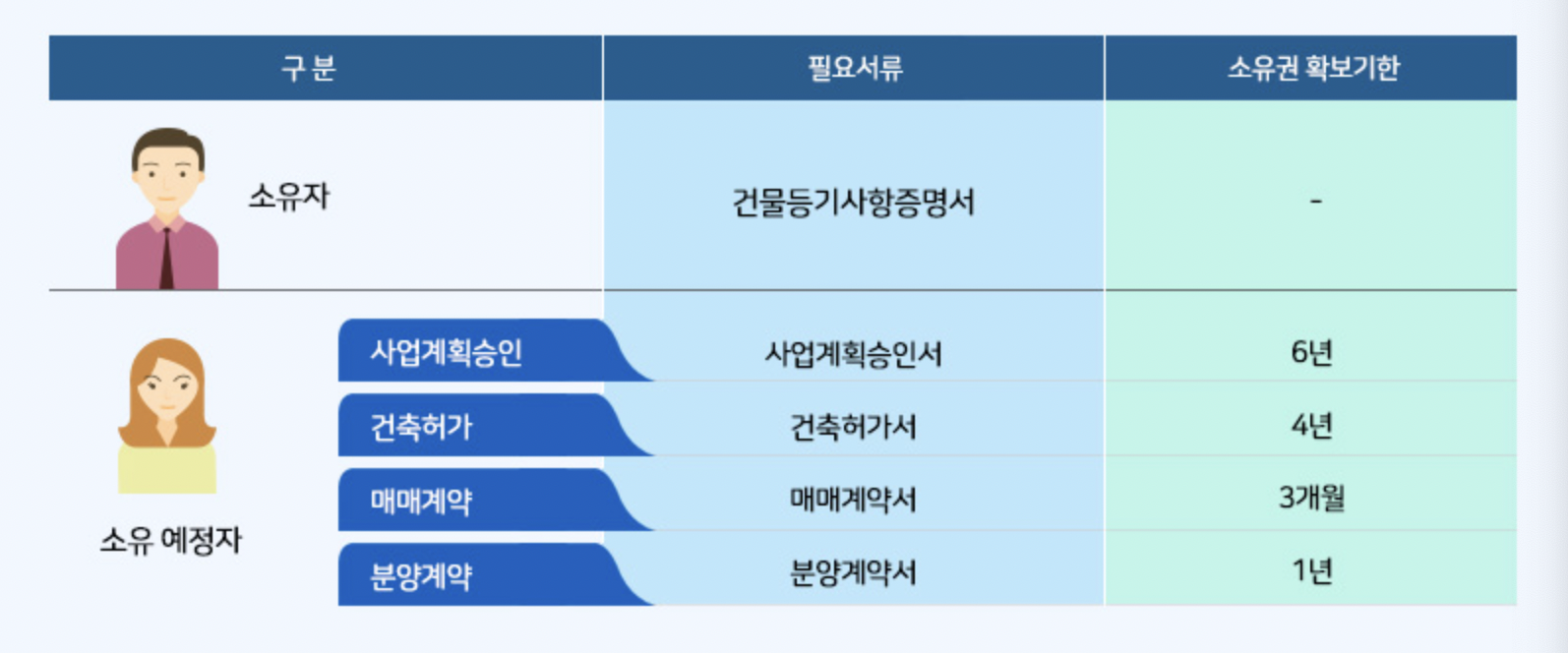 - (소유예정자) 사업계획승인서, 건축허가서, 매매계약서, 분양계약서