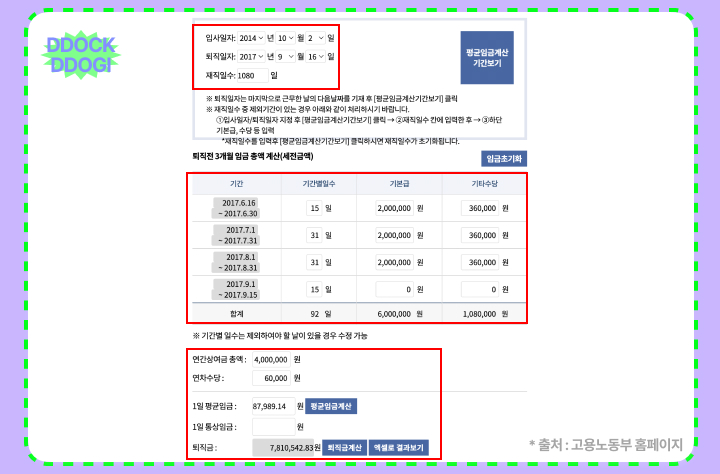 퇴직금 계산기 화면입니다.