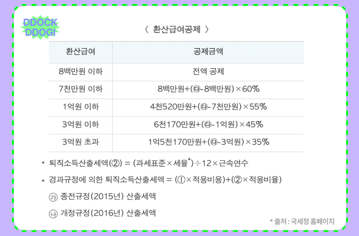 국세청 퇴직소득세를 참고해 주세요.