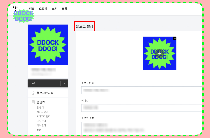 티스토리(tistory)로 들어가 본인의 '블로그 설정' 화면으로 들어가 주세요.