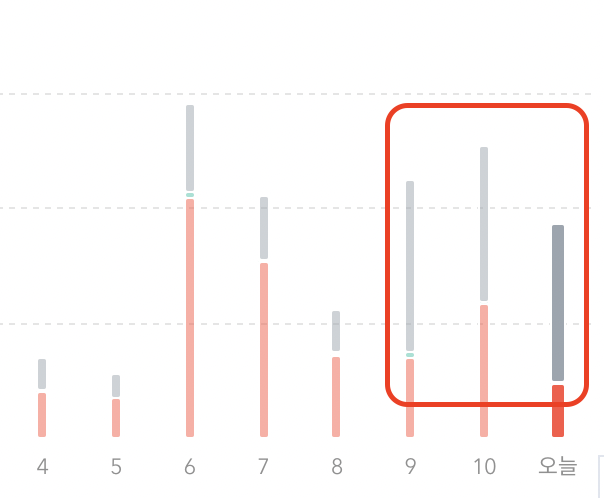 위의 티스토리 통계를 보시면 회색 부분이 직접유입 부분입니다. 지나가시다 이 글을 보시게 된 분들을 위해 간략하게 설명 드리자면 '직접유입'은 해당 도메인을 즐겨찾기 하거나, 어딘가에 공유되어서 거치는 매체 없이 직접적으로 접속하게 될 경우 나타나는 유입입니다. 이전의 날짜를 보면 직접/기타 유입이 검색유입과 적정한 빈도로 나타나는데 9일부터 11일 현재까지는 비중이 이상해지는 것을 확인할 수 있습니다.