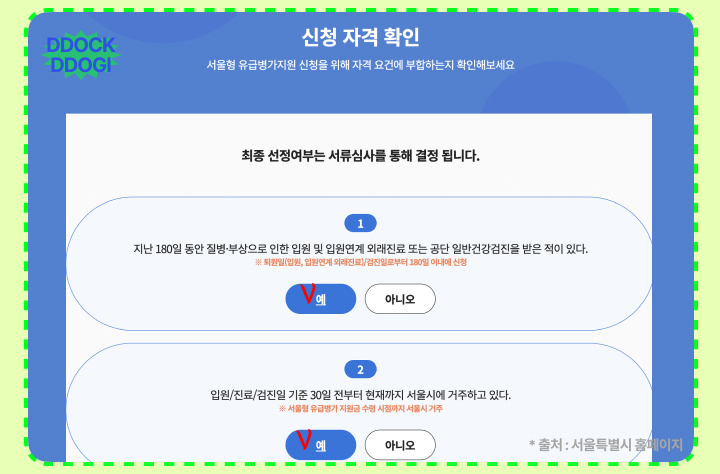 몇 가지의 상황 질문으로 내가 조건에 해당되는지 확인해 볼 수도 있습니다.