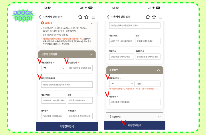 인적사항과 차량정보 등을 입력하여 납부하면 되니 신청 방법은 굉장히 간단합니다. 1월 안에 자동차세를 일시 납부하면 1년 분 자동차 세액의 6.4%를 공제받을 수 있으니 가능하다면 자동차세 연납 신청을 통해 조금이라도 세금을 아끼면 좋겠습니다.