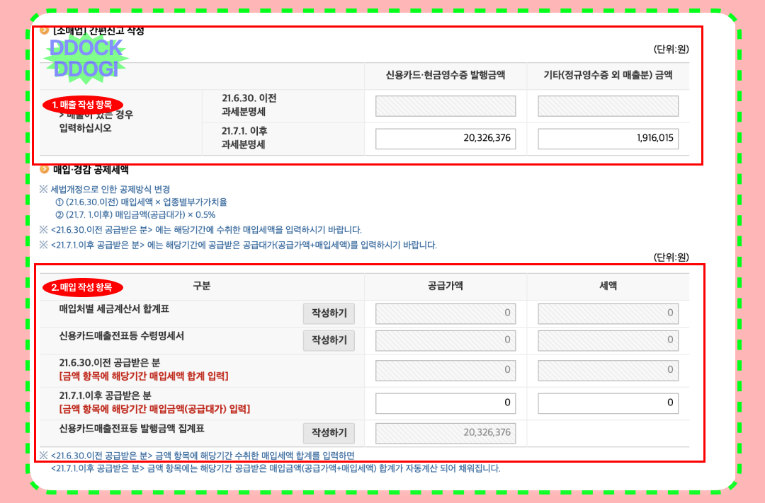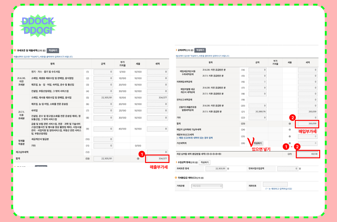 곧 2023년 부가가치세 신고 기간이 다가올수록 다급해지는 마음,, 이번 년도도 실수하지 않도록 똑또기는 기록하려 합니다. 저번에는 도소매업 온라인 쇼핑몰 기준의 부가가치세 신고 방법을 정