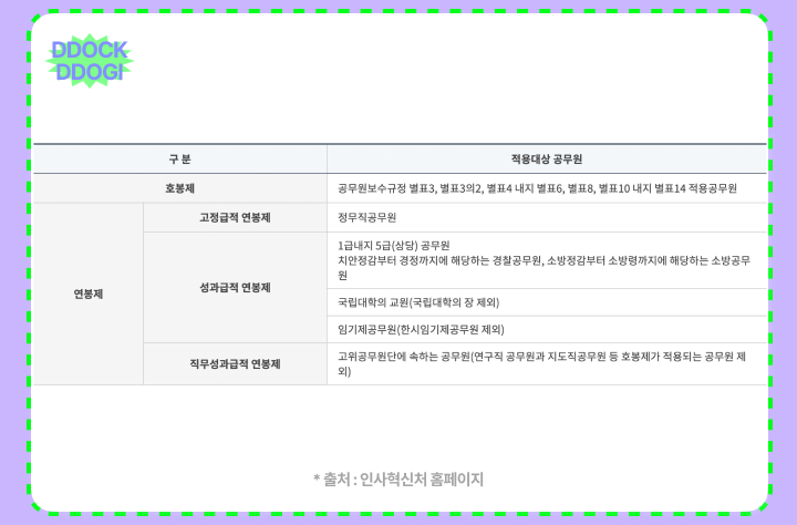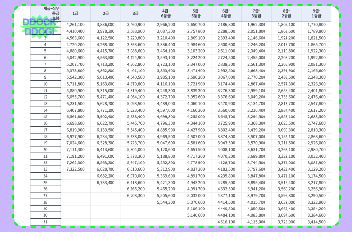 인사혁신처의 표를 확인해 주시면 됩니다.